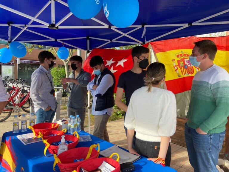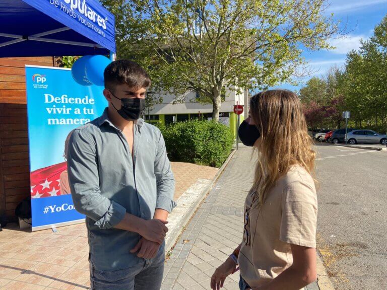 Bea Fanjul dialogó con todos los miembros de la mesa sobre su nuevo proyecto al frente de la organización, especialmente con los jóvenes de Nuevas Generaciones de Rivas y se mostró muy atenta y participativa explicándole a los vecinos que se acercaban allí el proyecto de libertad de Isabel Díaz Ayuso para la Comunidad de Madrid.